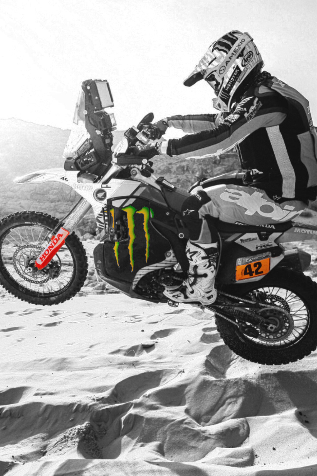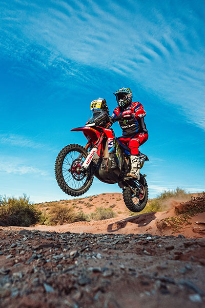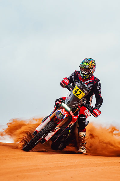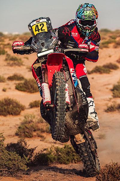 Chaque casque raconte un épisode de mon parcours en rallye-raid. Différents designs pour une même arme de confiance : l’Arai MX-V EVO.